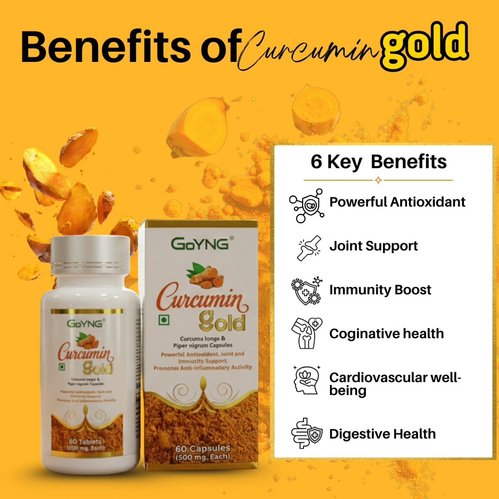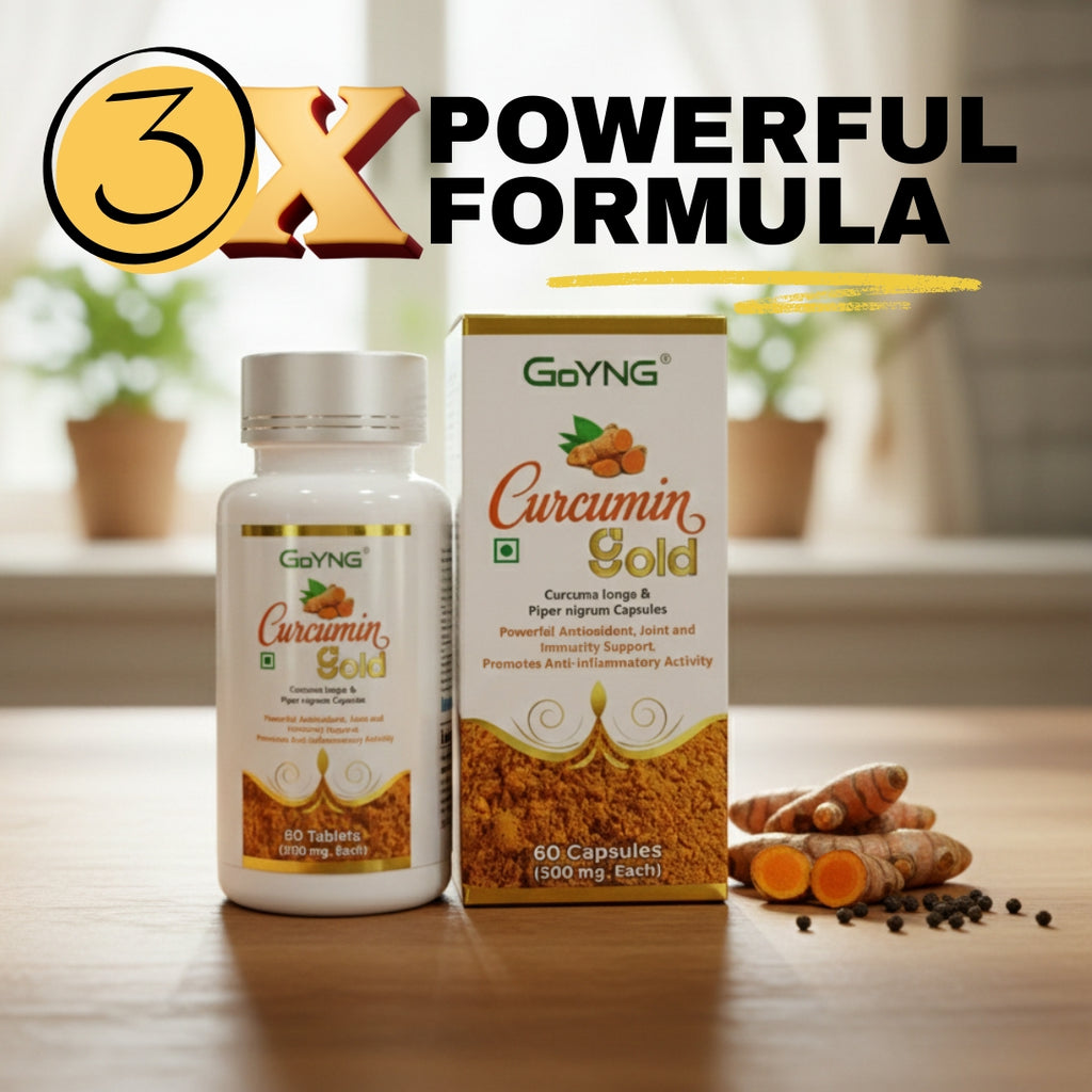 3X Curcumin power with Bioperine. Get the benefits of active compound in turmeric with GoYNG Curcumin Gold. Economical and convenient daily dose to boosts immunity, reduce inflammation and to support overall health naturally Immunity to fight season changes, highest bioavailable curcumin with bioperine for joint pain, , skin health, energy